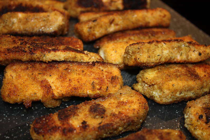 - Tijdens het dippen in het ei en de paneermeel kunnen er klonten ei met paneermeel aan je vingers blijven plakken, haal deze tussendoor weg.
