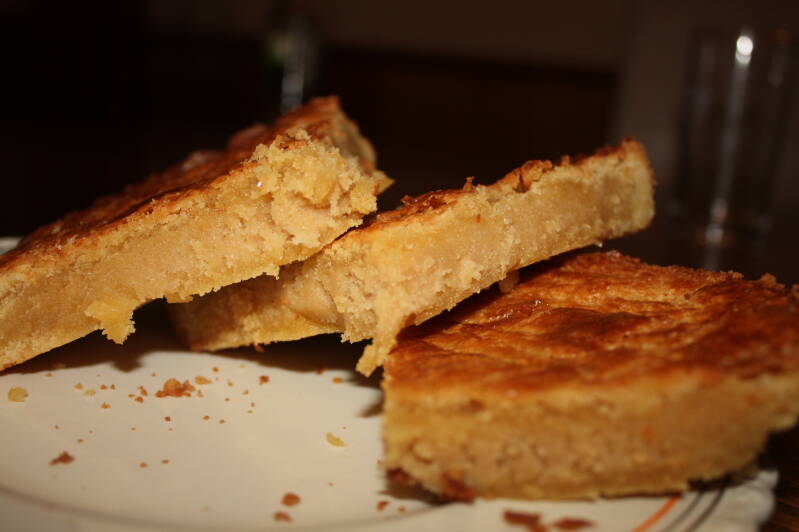 Boterkoek, het is lekker, makkelijk en blijft het goed doen bij de koffie of bij verjaardagen. Natuurlijk kan je dit recept ook maken om in de oven te doen! ik heb hier 13 puntjes uitgesneden.